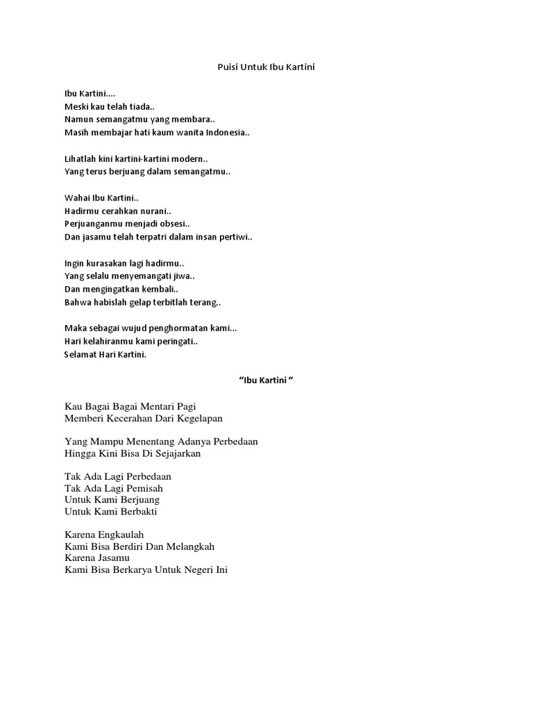 Kumpulan puisi ibu kartini 2017. Namun semangatmu yang membara. Kau adalah pahlawan bangsa.
