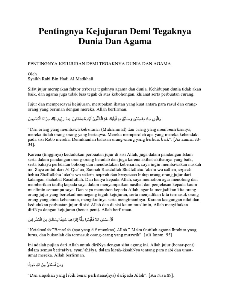 Sayidina Muhammadin waala alihi wasohbih. Teks Ceramah Agama Islam Tentang Kejujuran. Contoh Ceramah Singkat dan Penjelasan Lengkapnya.