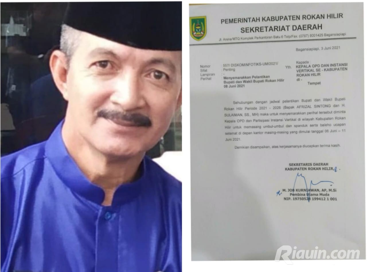 Semoga dapat menjadikan Indonesia lebih baik. Nasarudin SH MH atas dilantiknya menjadi Bupati dan Wakil Bupati Kabhpaten Pelalawan Periode 2021 2024Senin 26 April 2021. PEKANBARU-Gubernur Syamsuar melantik pasangan Afrizal Sintong dan H Sulaiman sebagai Bupati dan Wakil Bupati Rokan Hilir Rohil periode 2021-2026 Selasa 862021 di Gedung Balai Pelangi Komplek Gedung Daerah Jalan Diponegoro PekanbaruSelain Gubernur Syamsuar pelantikan juga dihadiri sejumlah tamu undangan lainnya seperti Wakil Gubernur Edy Natar.