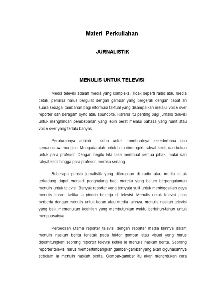NASKAH siaran radio tidak sama dengan naskah berita media cetak ataupun media online. Sebuah berita yang kita nikmati setiap hari tidak terlepas dengan naskah berita televisi yang pada mulanya disusun terlebih dahulu untuk kemudian dibacakan di. Laporan tentang segala sesuatu peristiwa sebagaimana adanya.