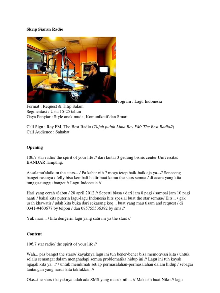 Berikut Contoh Script Opening Untuk Siaran Radio Program Request Pdf