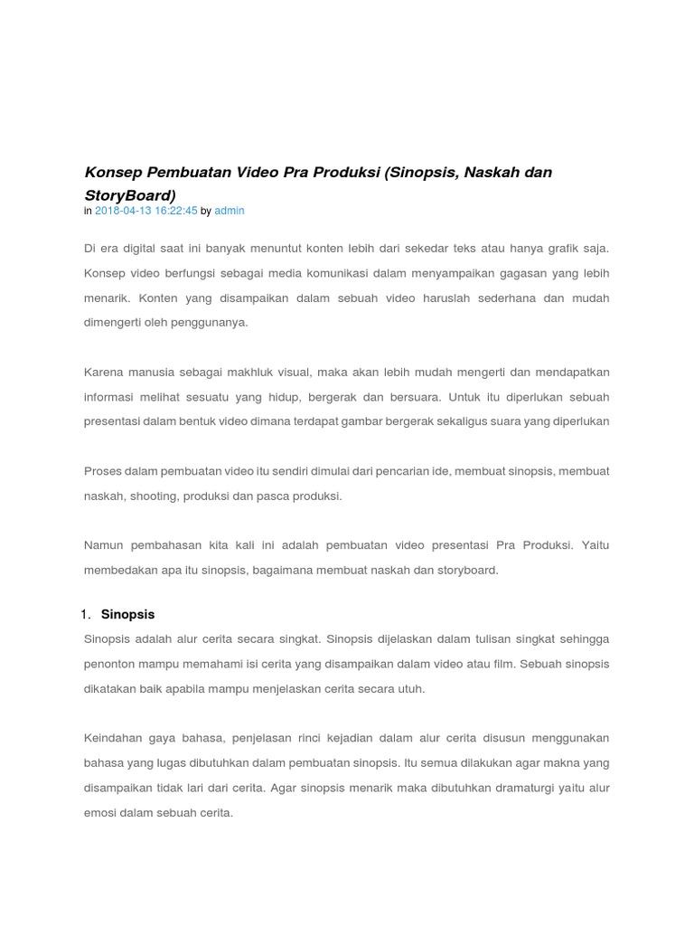 Konsep Pembuatan Video Sinopsis Naskah Dan