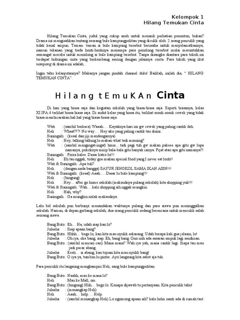 Naskah Drama B Indonesia Hilang Temukan Cinta