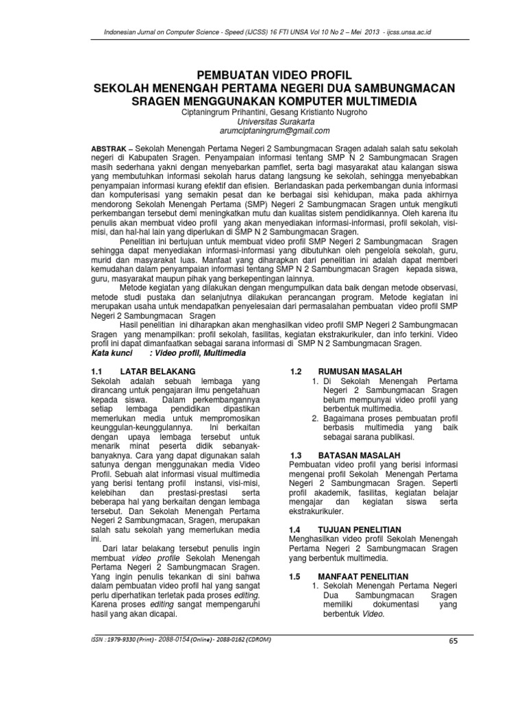 Jangan sekolah di sini. NASKAH PUBLIKASI disusun oleh Paray Theo Lonando 10124625 Kepada JURUSAN SISTEM INFORMASI SEKOLAH TINGGI MANAJEMEN INFORMATIKA DAN KOMPUTER AMIKOM YOGYAKARTA YOGYAKARTA 2014. Adapun manfaat pembuatan video profil dalam 26 Pengertian Video Analog penelitian ini adalah sebagai media promosi Video analog di bentuk dari deretan sinyal informasi dan dokumentasi Sekolah Dasar elektrik gelombang analog yang di rekam Negeri Menadi Kabupaten Pacitan yang dapat oleh kamera dan di pancarluaskan melalui memberikan citra.