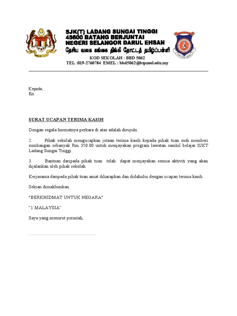 Contoh Surat Ucapan Terima Kasih Atas Sumbangan Kewangan Bagikan Contoh