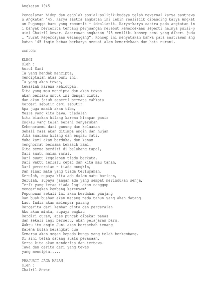 Contoh Puisi Angkatan 45 Dan 66 Kt Puisi