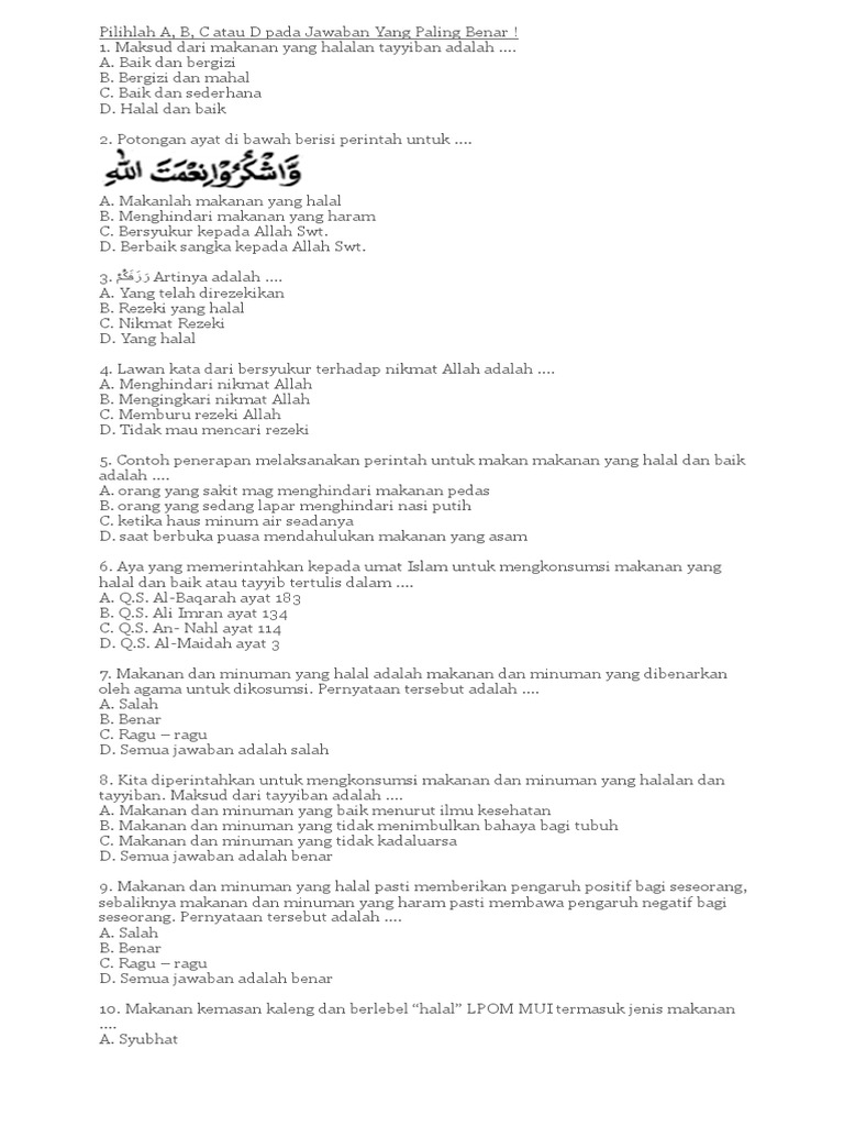 Jawaban No 1 Apa Pilihan Ganda No 2 A Makanlah Makanan Yang Halal B Menghindari Makanan Haram Brainly Co Id
