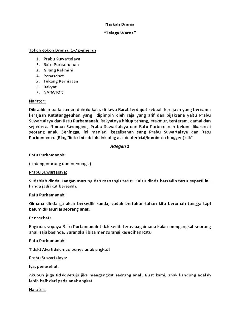 Oct 02 2019 telaga warnadrama 7 orang teater tradisional dalam cerita rakyat yang singkat aderiz7 kim november 08 2017 0 comments naskah drama cerita r. Contoh TREATMENT naskah skenario. Pengertian Dialog Monolog Prolog dan Epilog.
