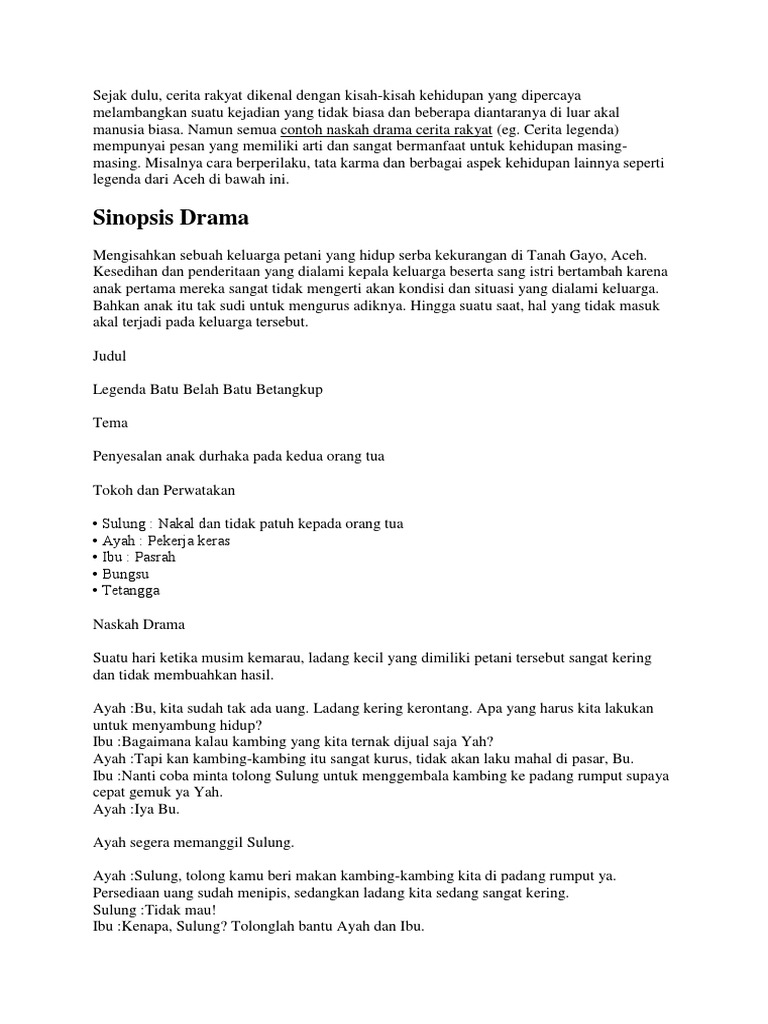 Disebuah desa bernama suka maju hiduplah seorang pemuda yg bernama Malin. Contoh Naskah Drama Cerita Rakyat. Contoh naskah dongeng anak.