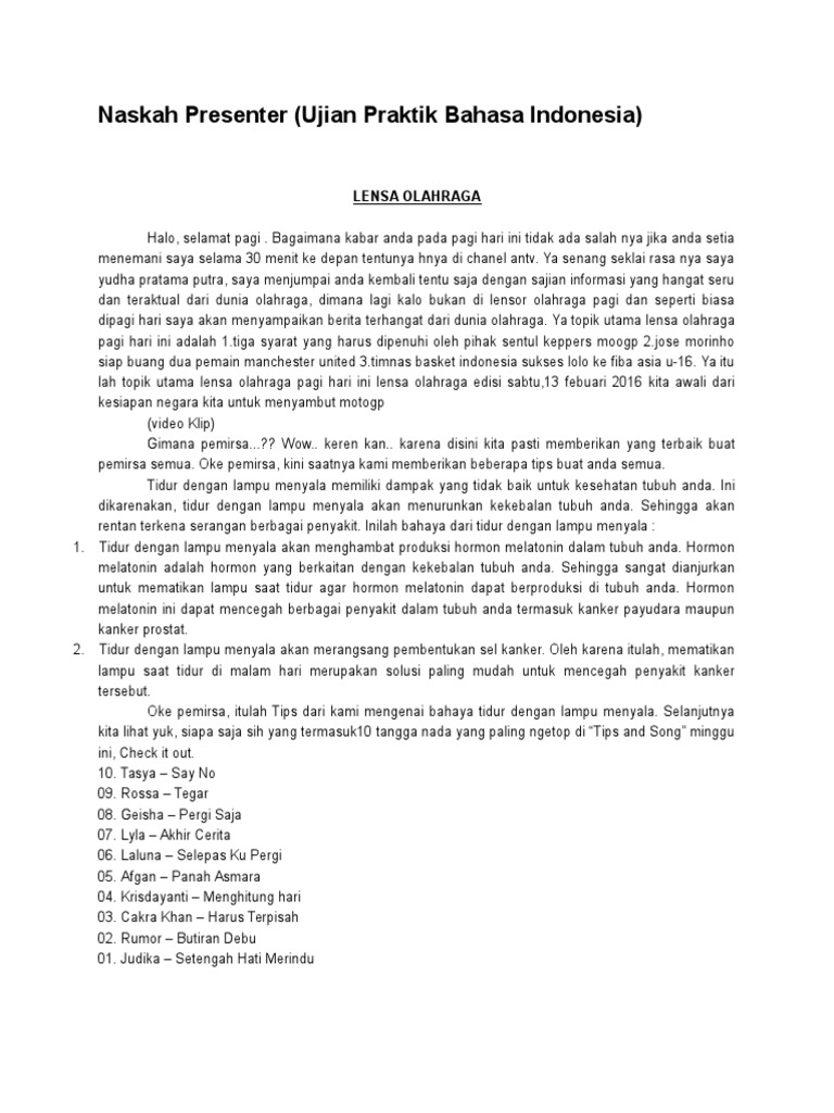 Contoh Teks Naskah Pembawa Berita Dan Reporter Nurissa Blog