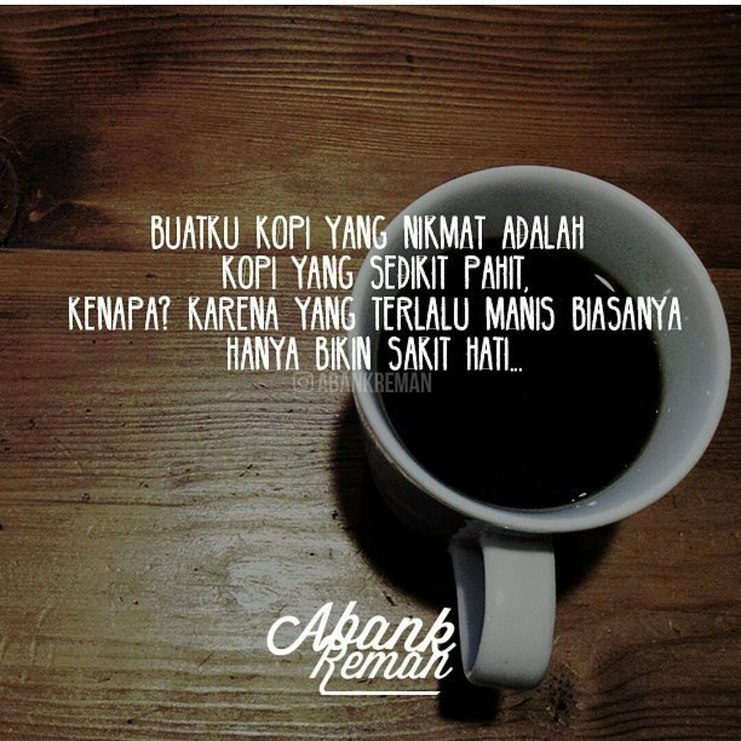 Bahkan banyak diantara mereka yang tidak bisa hidup sehari tanpa kopi. Sesempurna apa pun kopi yang kamu buat kopi tetap kopi punya sisi pahit yang tak mungkin kamu sembunyikan deelestari Secangkir kopi hadirkan inspirasi. Seperti layaknya kopi hitam yang tetap kamu nikmati meskipun rasanya pahit.