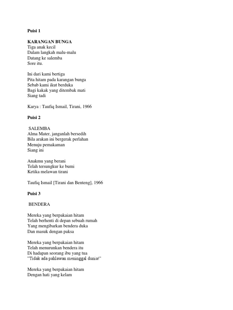 Kumpulan puisi tentara. Shikibu dikenal dengan dua karyanya yaitu The Diary of Lady Murasaki sebuah kumpulan puisi dan The Tale of Genji novel termashyur pertama di dunia. Jiwa pejuang kemerdekaan dulu 3. Otomatis dia teriak dong dia selesain semua pekerjaannya di rumah aja.