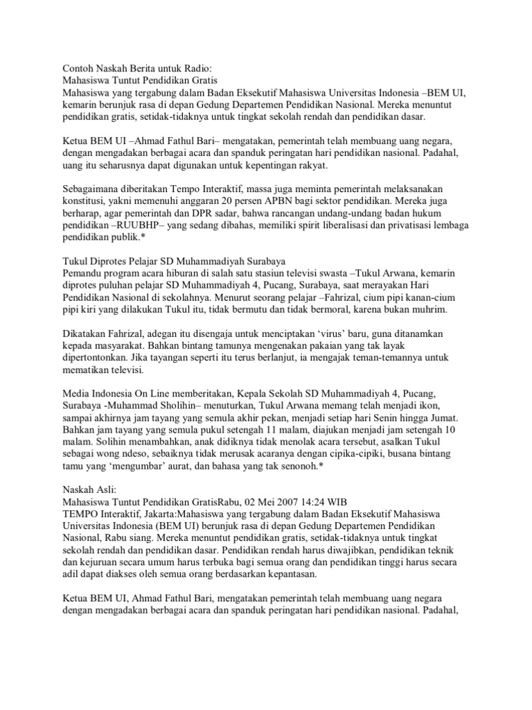 Contoh Naskah Berita Untuk Radio