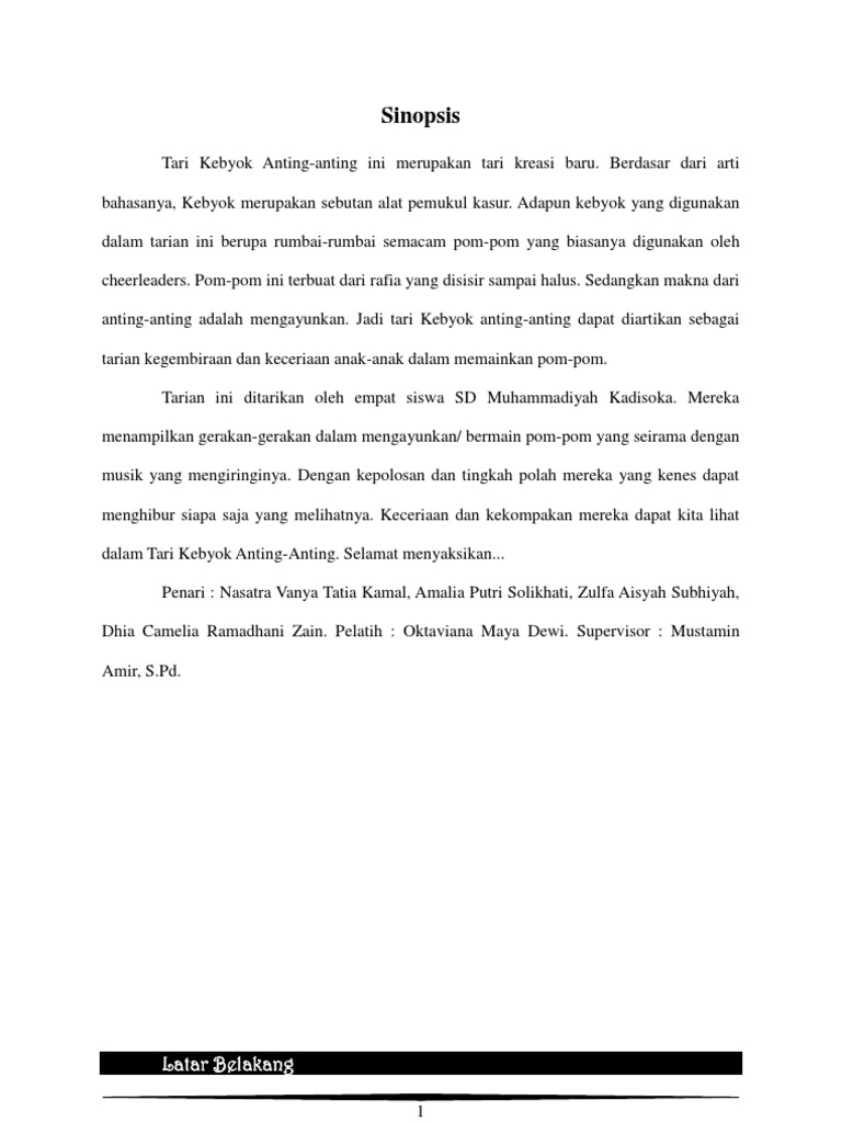 Contoh Sinopsis Tari Kreasi Baru Python
