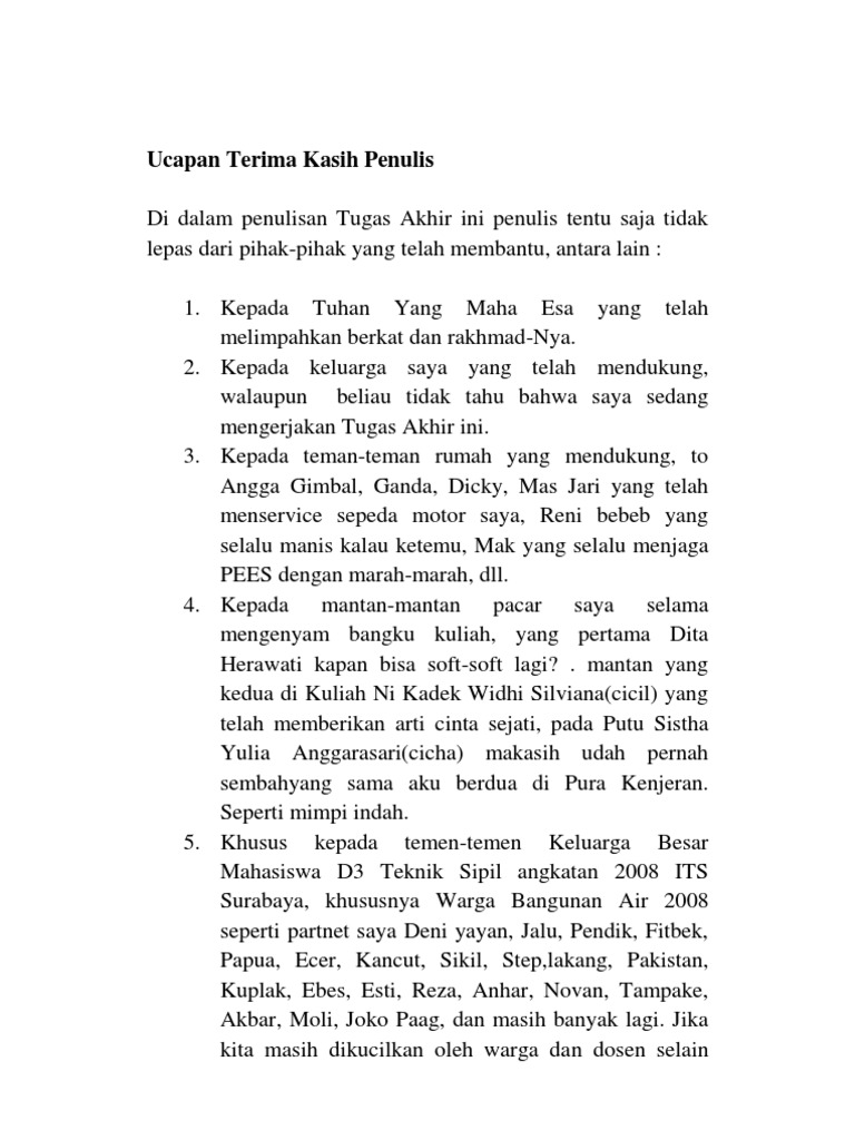 Ini Daftar Orang yang Harus Kamu Tulis di Kata Pengantar Tugas Akhir 1000 Ucapan Terima Kasih untuk Guru Pacar Ibu. Penulis juga mengucapkan terima kasih yang sebesarnya kepada semua pihak yang membantu dalam proses penyusunan makalah ini. Terima kasih kedua orang tua penulis H.
