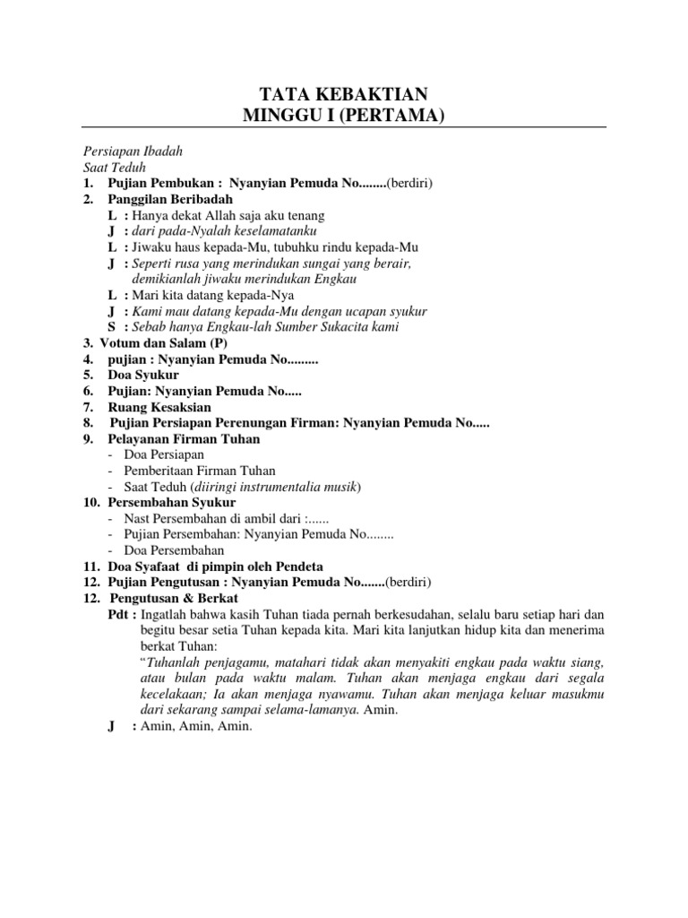 Selamat datang dan selamat beribadah kepada bapakibusaudara yang hadir dalam ibadah perayaan natal pemudai dan remaja gkpi resort khusus kota jambi kiranya melalui ibadah perayaan natal ini iman dan pengharapan kita dikuatkan oleh tuhan kita. Berikut artikel dibawah ini adalah Contoh Tata Ibadah Kristen 1. Menurut hadis bulan Ramadan adalah waktu yang tepat untuk berlomba-lomba melakukan kebaikan.