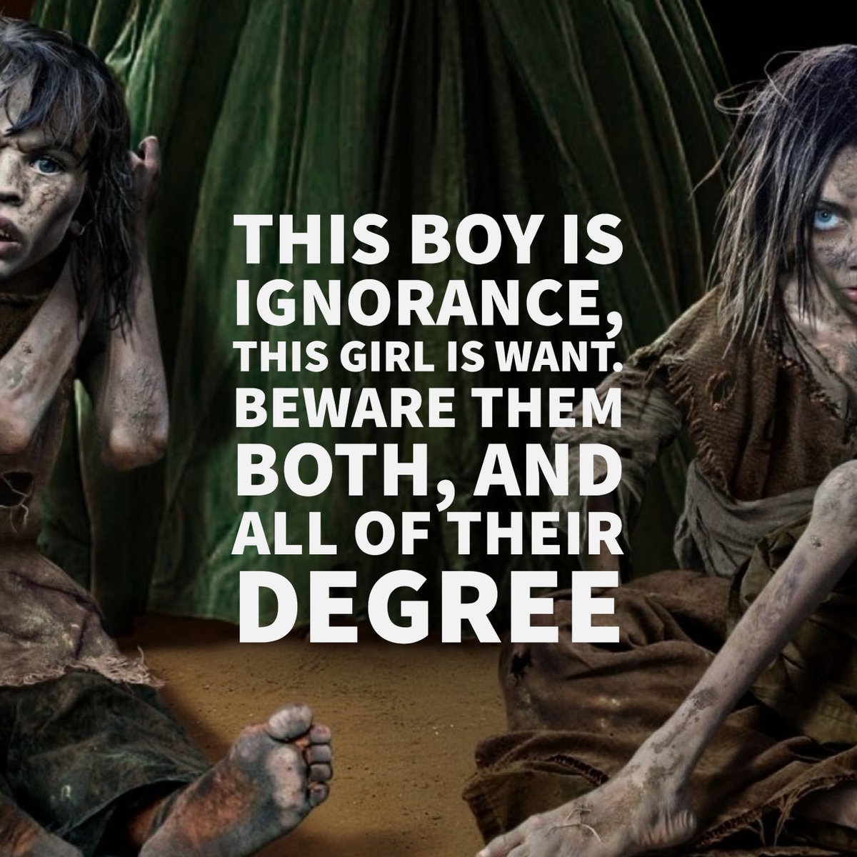 They are wolf-like shriveled pinched and twisted. It conveys Dickens message that ignorance and dismissal of the poverty in Victorian Britain particularly through belief in Malthus views against helping the poor as Scrooge showcases was the cause of greed or Want and therefore the cause of the widespread poverty. In Stave 3 Dickens uses lists of adjectives to present ignorance want in a hyperbolic manner.