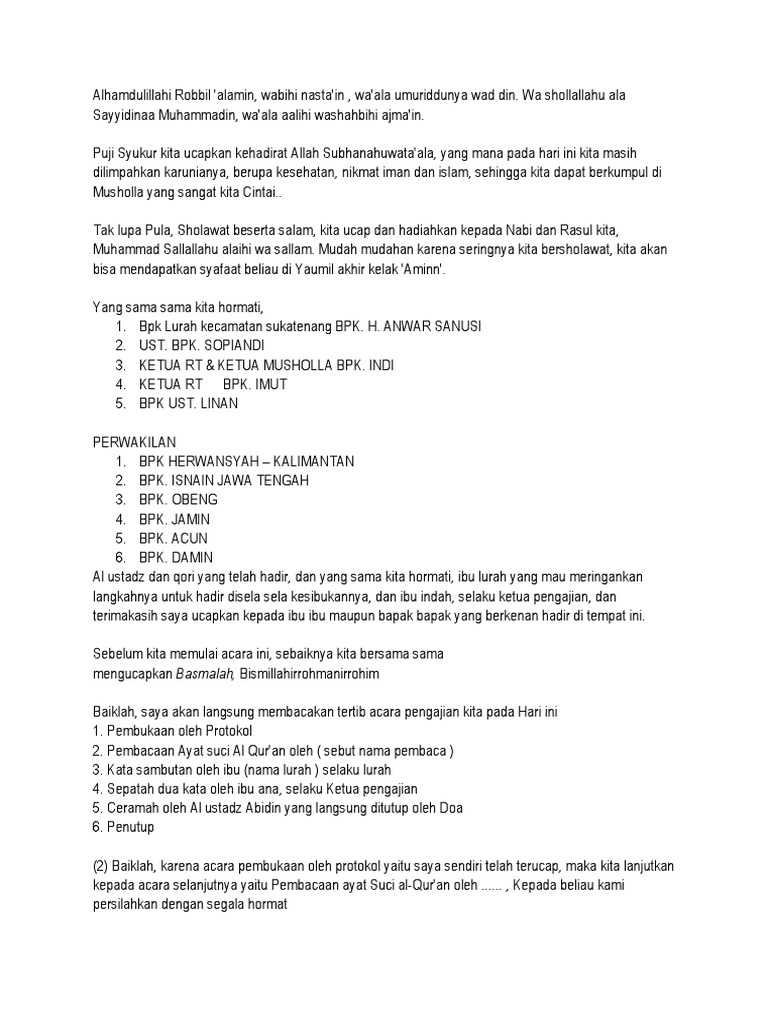 Contoh Teks Mc Pada Acara Pengajian Rutin Youtube