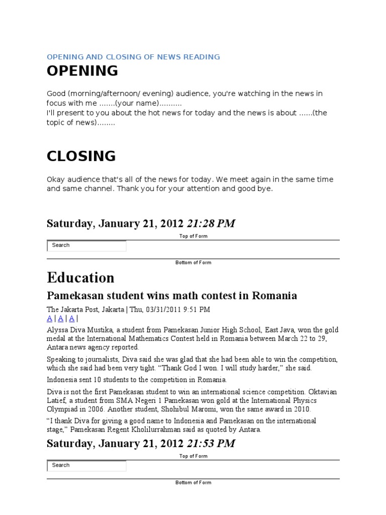 Naskah berita radio lebih ringkas menggunakan bahasa tutur informal dan menggunakan tanda-tanda baca khusus Sign Posting. Saya merantau sejak tahun 2007 awalnya bekerja di Singapura lalu ketemu jodoh di sana. Teks Berita Terbaru Menggunakan Bahasa Jawa - Berbagai Teks Penting DOC CONTOH NASKAH BERITA sautuna fm - Academiaedu Contoh Teks Menjadi Presenter Berita Tv - Berbagai Teks Penting Contoh Naskah Berita Untuk Radio Contoh.