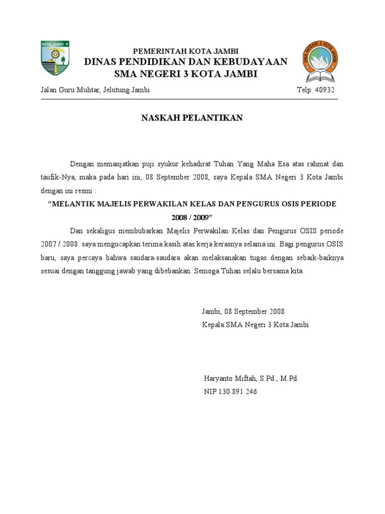 Contoh berita acara pelantikan osis.