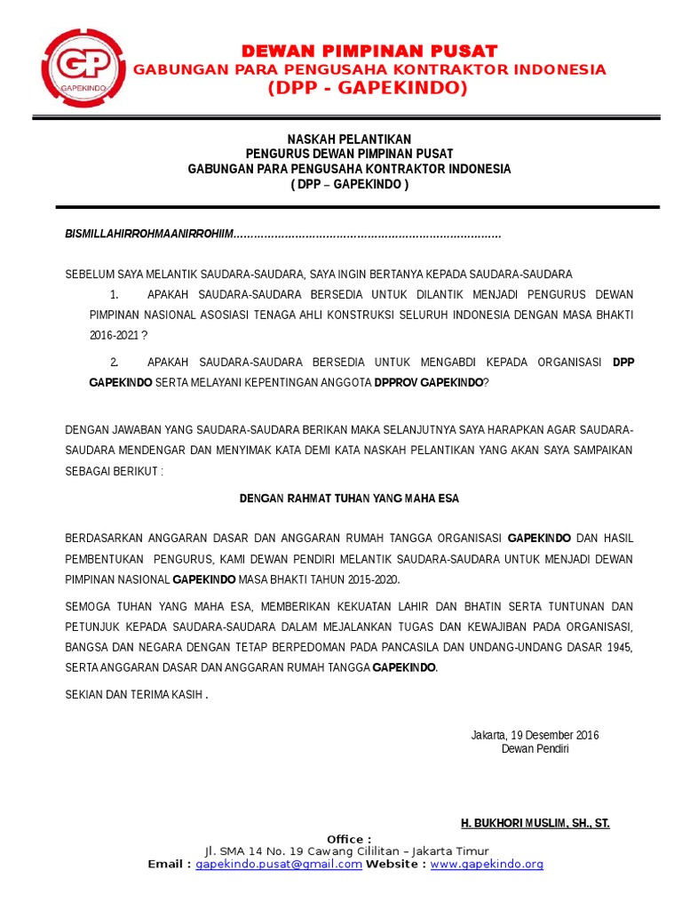 Naskah Pelantikan Berita Acara Pelantikan Pengurus Astakindo