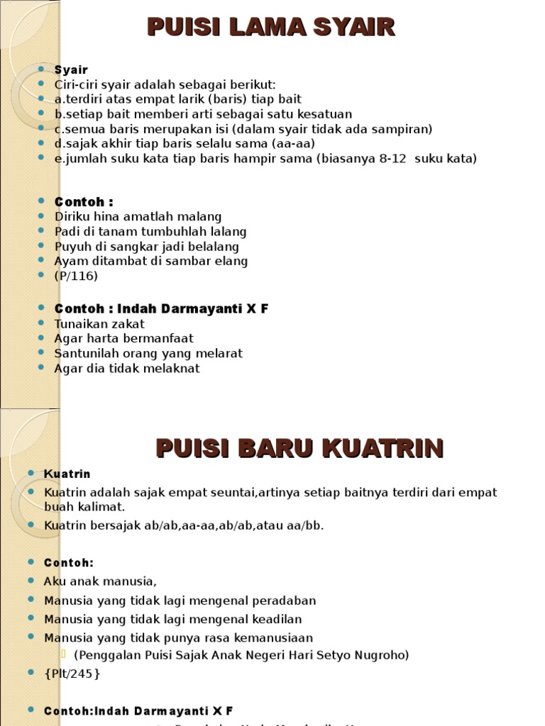 Selain dari pengertian masih ada perbedaan lain antara puisi lama dan puisi baru. Kumpulan puisi rakyat pantun syair gurindam bahasa indonesia kelas 7 semester 2 assalamualaikum video kali ini membahas mengenai kumpulan pantun ini adalah pantun yang dibuat untuk mengajarkan atau mengingatkan kepada orang orang tentang ajaran islam. Adapun contoh syair agama adalah sebagai berikut.