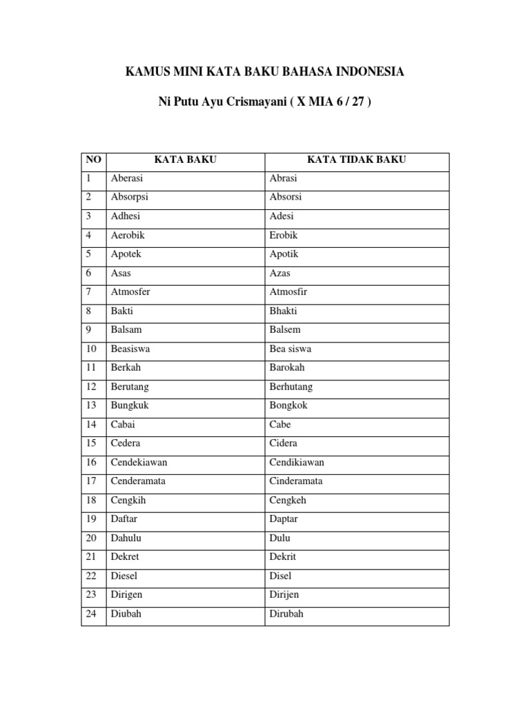 Daftar Kata Baku Dan Tidak Baku
