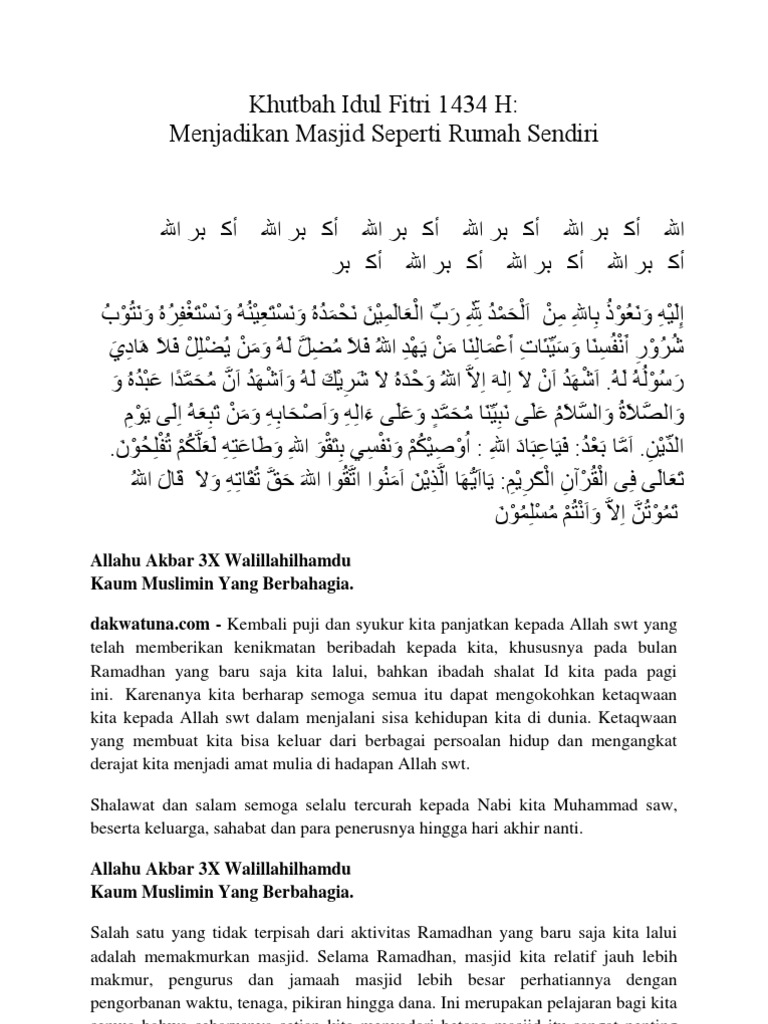 Selasa 20 juli 2021 0452 wib. 1 RAMADHAN MEWUJUDKAN UMMAT BERKEMAJUAN Tim Majelis Tarjih dan P3M PDM Kota Surakarta þتاكربو الله ةحمرو مكيلع ملاسلا. TRIBUNNEWSCOM - Berikut contoh naskah khutbah Idul Fitri di rumah dilengkapi panduan pelaksanaannya.