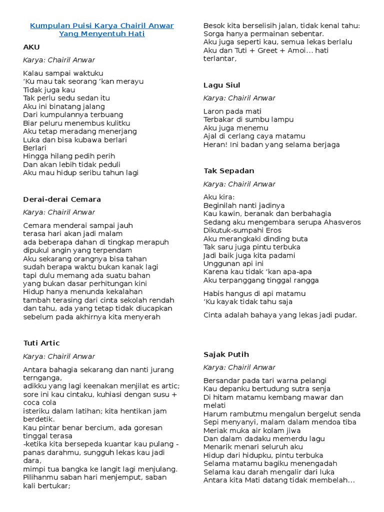 Contoh Puisi Puisi Aku Chairil Anwar Cikimm Com
