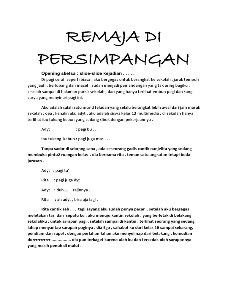 Skenario Film Short Movie Remaja Di Persimpangan 2