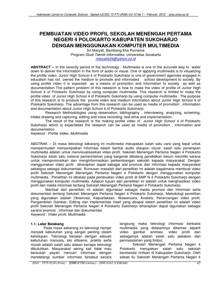 Pembuatan Video Profil Sekolah Menengah Pertama Negeri Dua Sambungmacan Sragen Menggunakan Komputer Multimedia